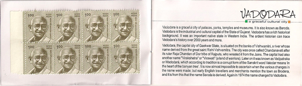 Stamp Booklet issued on 17.12.2009 depicting Heritage Sites of Vadodara |