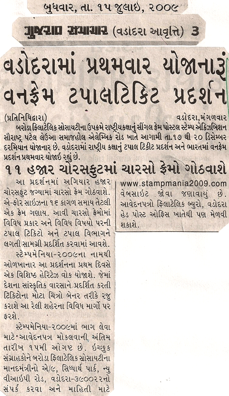 Daily, Gujarati, Vadodara Edition, 15.07.2009 |