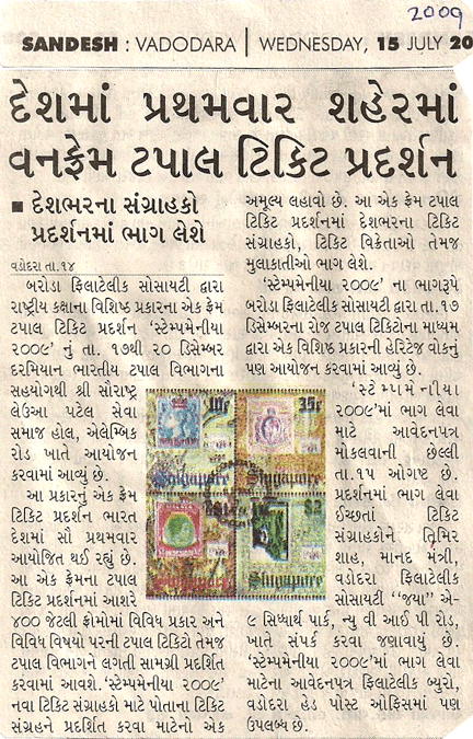Samachar Daily, Gujarati, Vadodara Edition, 15.07.2009 |