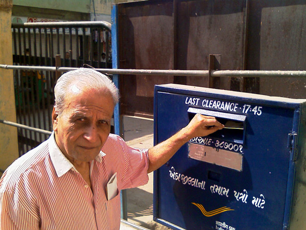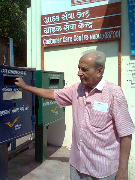 Printed Postcards being mailed at Nadiad Head Post Office by Senior