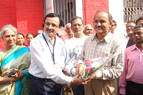 of flowers to Shri A. K. A. Joshi, Postmaster General, Vadodara Region.