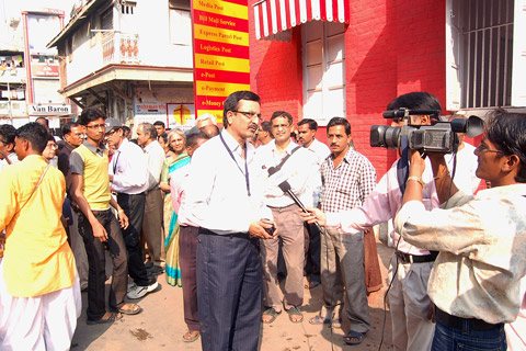 Pandya giving interview to T. V. Channel at Heritage Walk through stamps