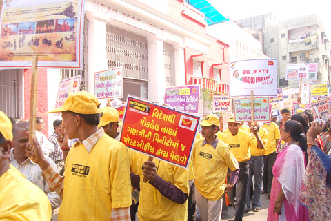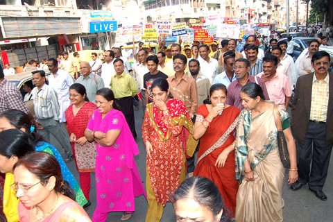 Post Staff at Heritage Walk through Stamps and Road Show holding playcard