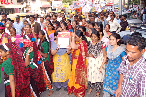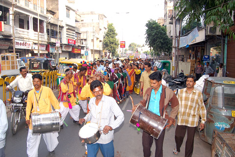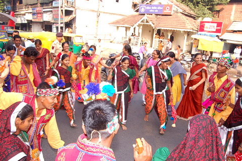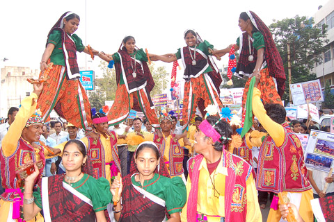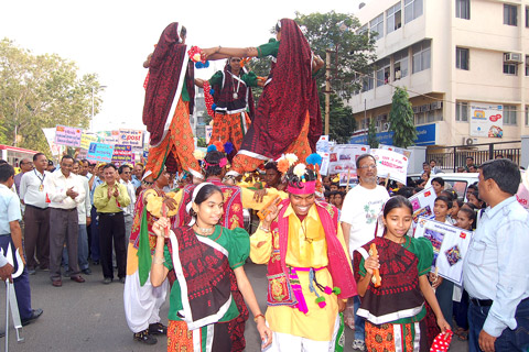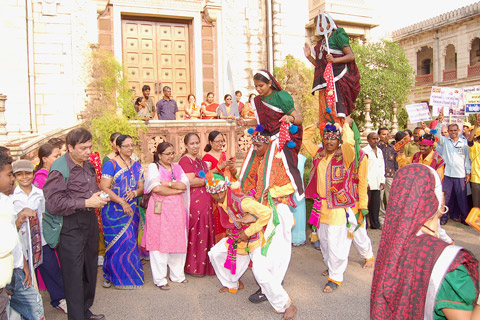Post Staff and Traditional Dance Players at Heritage Walk through Stamps